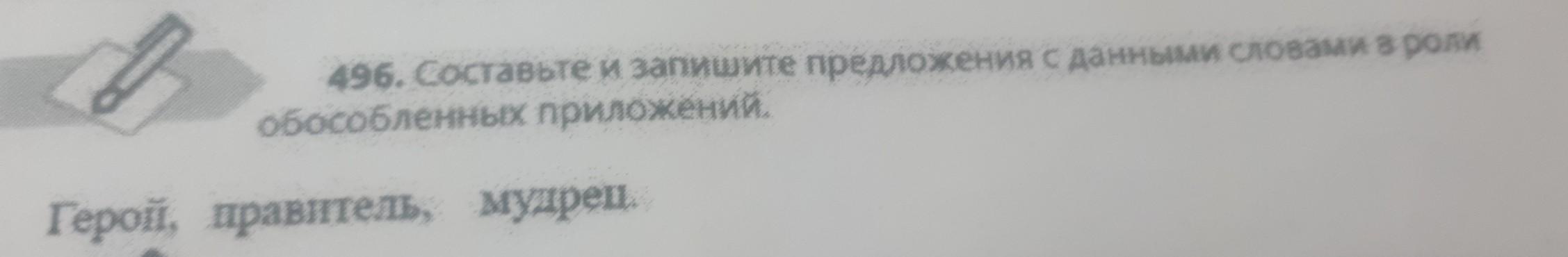 в Герой, правитель, мудрец. 496. Составьте и запишите предложения с данными словами в роли обособленных приложений.