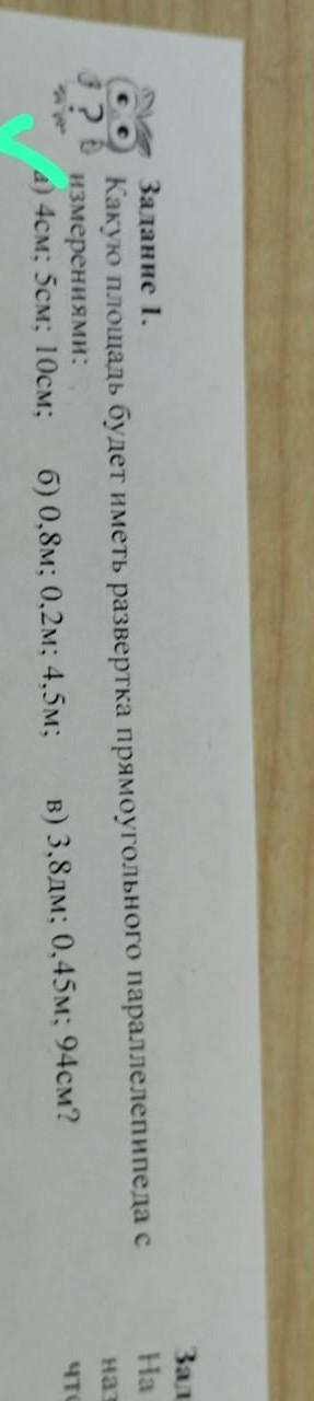 1) Площадь грани с размерами 4 см и 5 см равна: