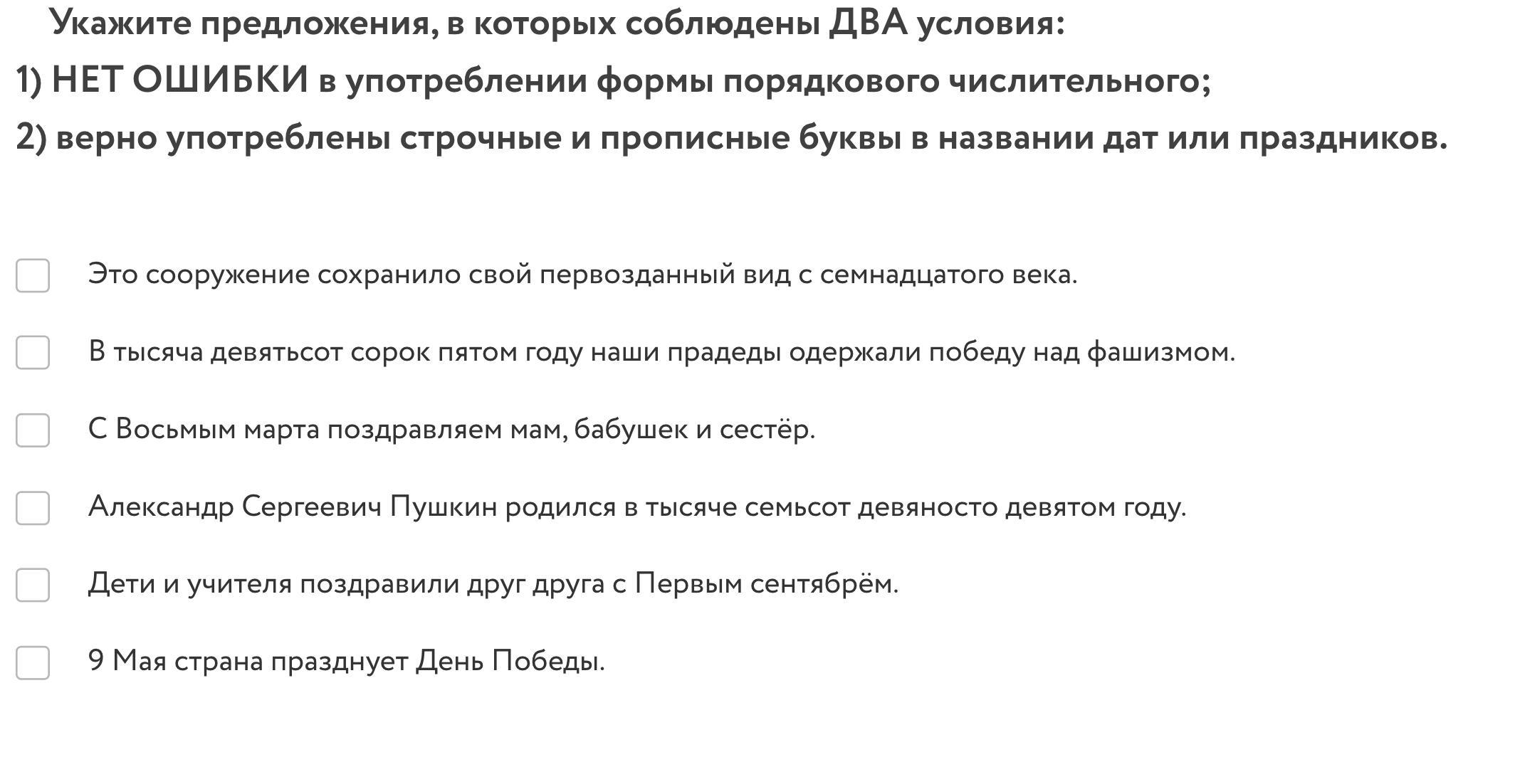 2) верно употреблены строчные и прописные буквы в названии дат или праздников.