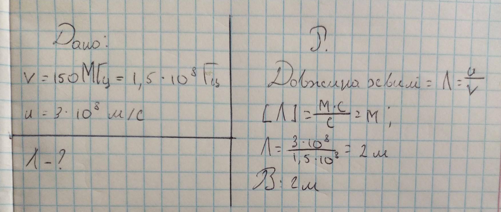 / Генератор прашоє на частоті 150 МГц. Яка довжина хвилі і період електромагнітного випромінювання
