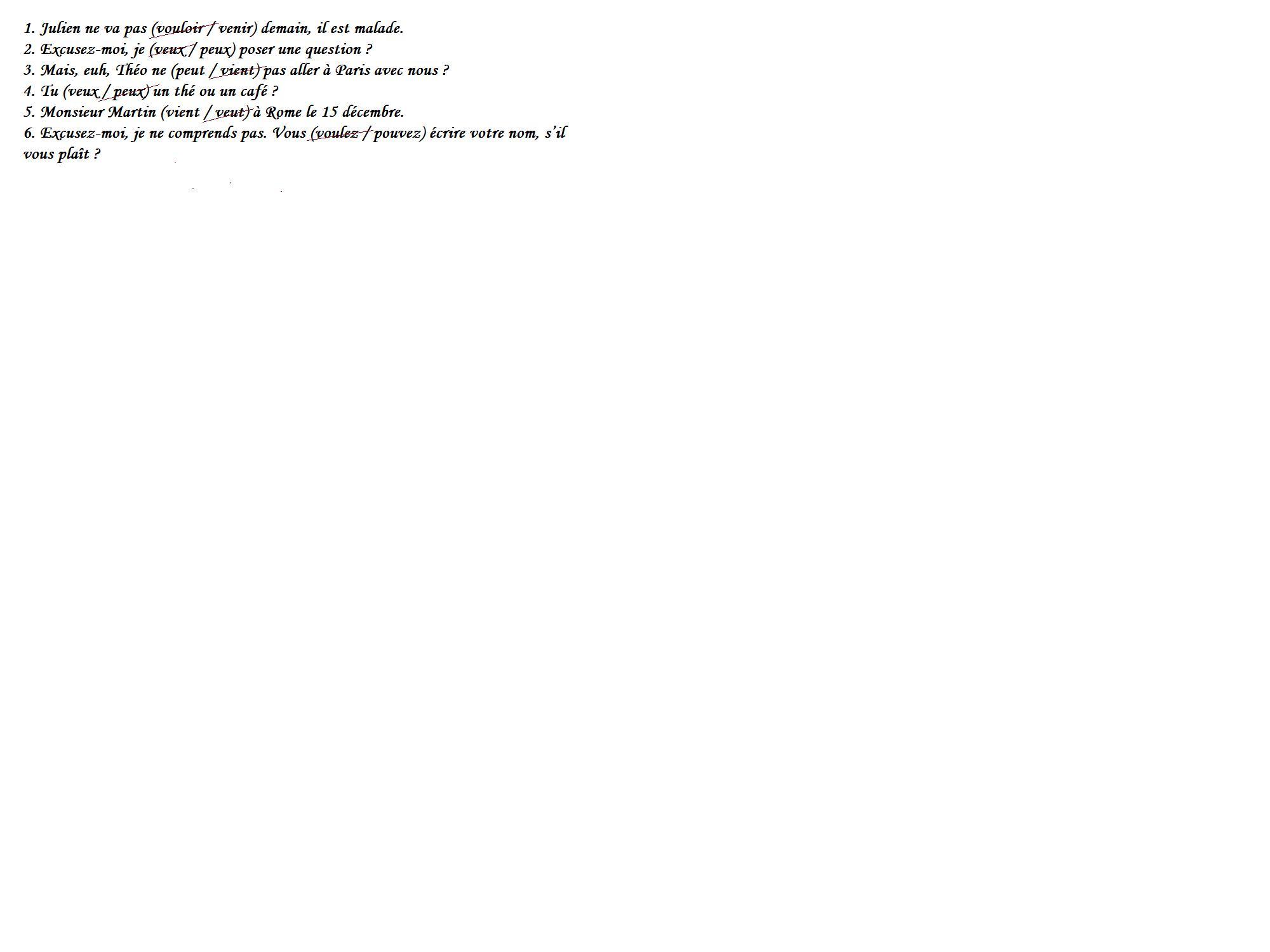 5. Monsieur Martin (vient / veut) à Rome le 15 décembre.