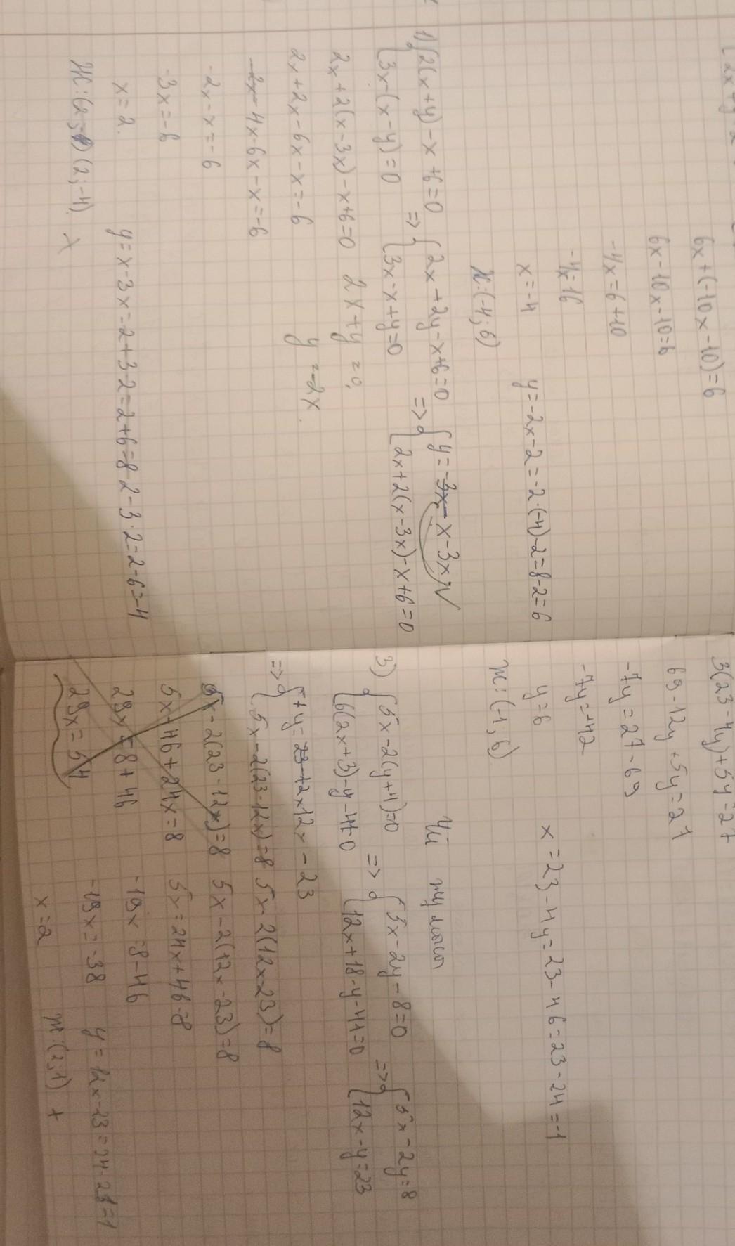 1427. 1) [2(x+y)- x + 6 = 0, 3x - (x - y) = 0; 2) [3(x+2y)-y-27 = 0, 4(x+y)-3x - 23 = 0; 3) [5x - 2 (y + 4) = 0, [6 (2x + + 3) - y - 41 = 0; 4) [2x+3(x+y)-11 = 0, 7(x+3y) - 6x + 59 = 0.