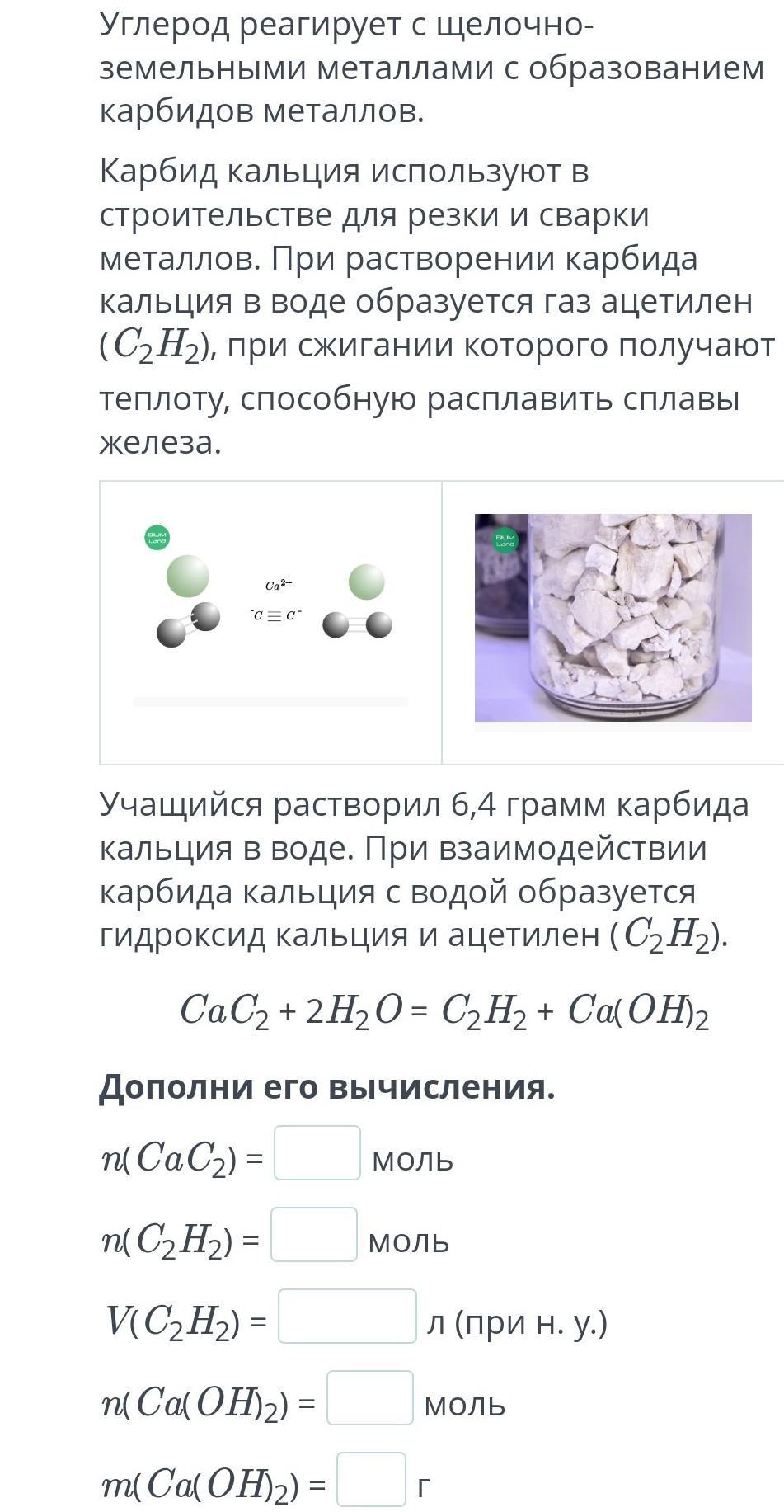 4) Из УХР=>n(Ca(OH)2)=n(CaC2)=0.1 моль