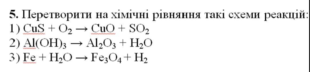 1) 2CuS + 3O2 → 2CuO + 2SO2