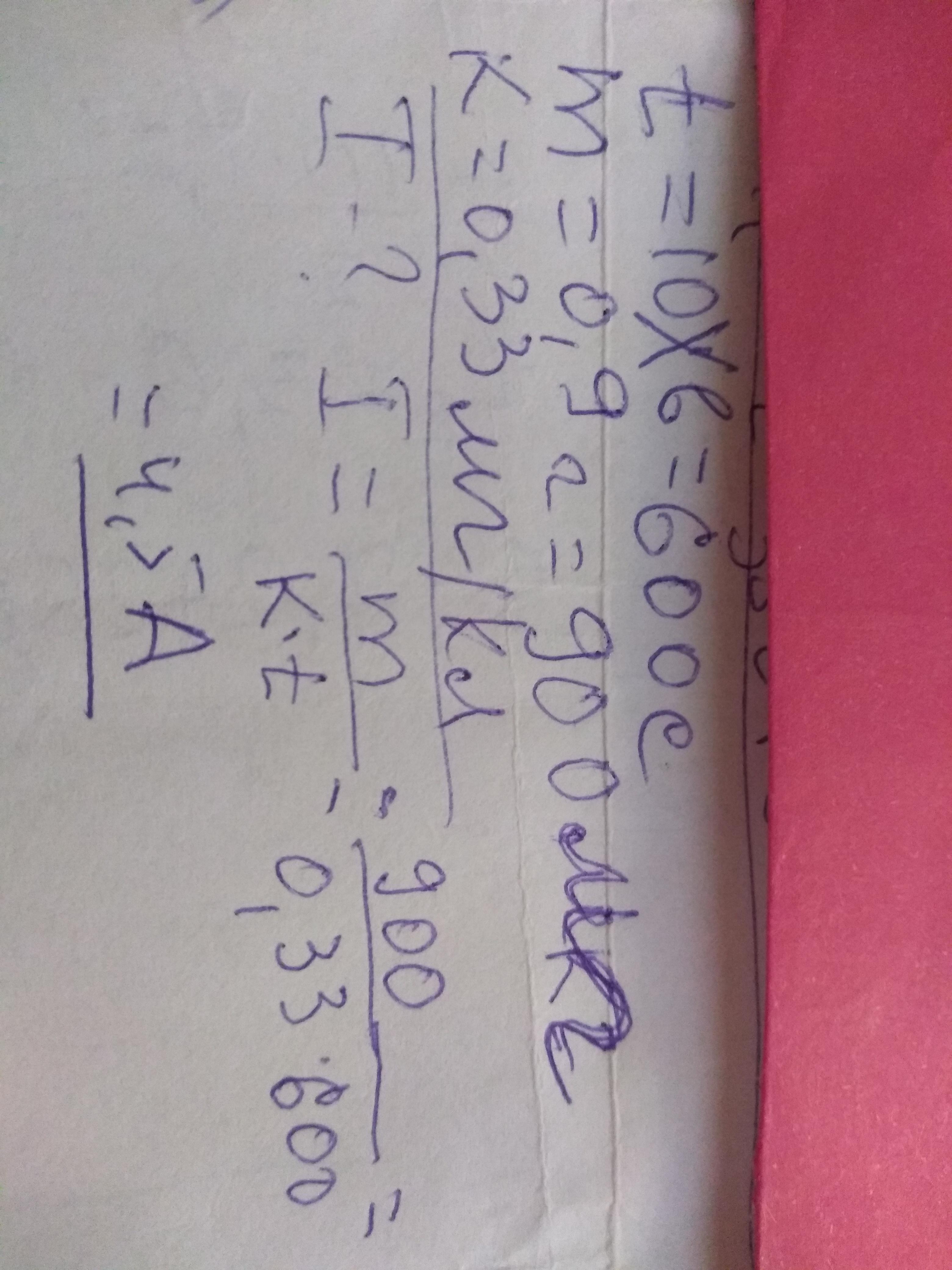 В мідній ванні за 10 хвилин виділилося 0,9 г. Знайти силу струму в ній, якщо електрохімічний еквівалент 0,33 мг/Кл.