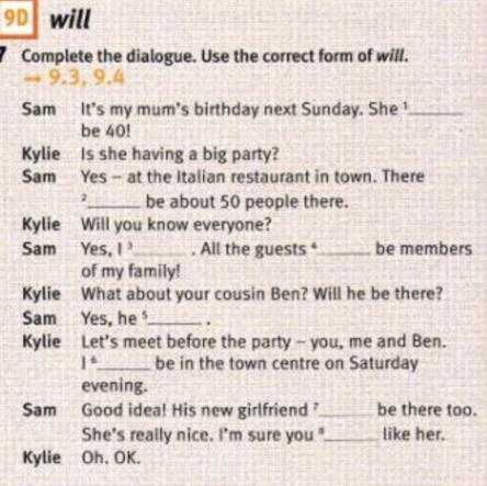 7 Complete the dialogue. Use the correct form of will.
