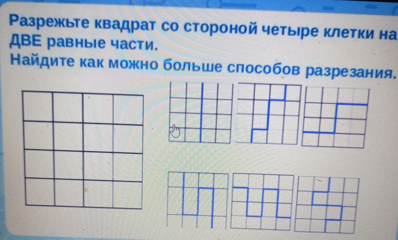 Найдите 6 способов разрезания на 2 равные части квадрата размером 6 на 6