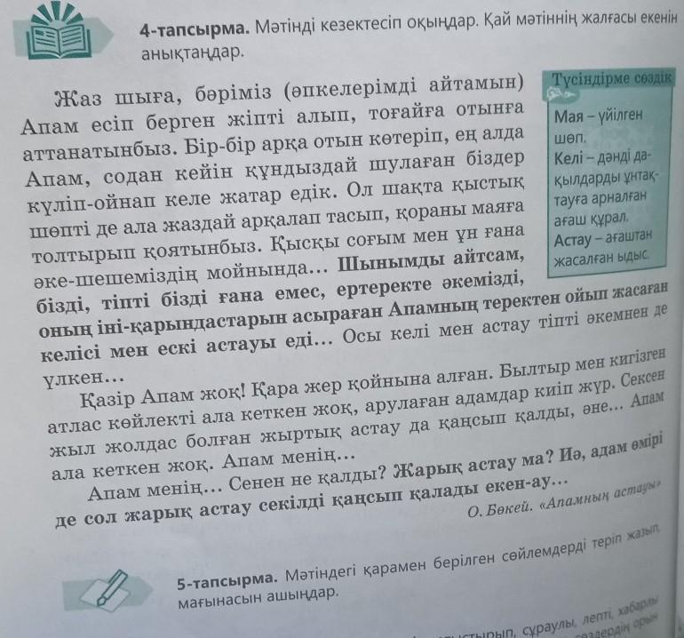 5-тапсырма. Мәтіндегі қарамен берілген сөйлемдерді теріп жазып, мағынасын ашыңдар. пожалуйста срочно помогите, 50 баллов дам