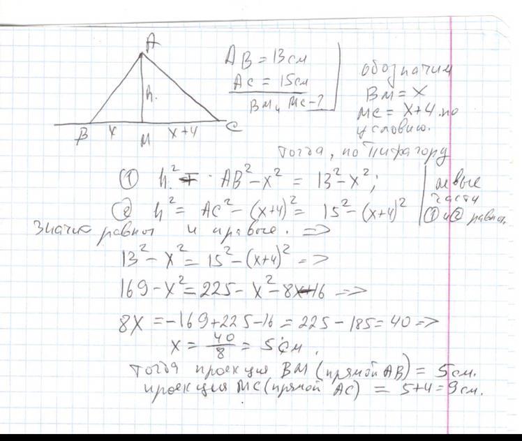 З точки до прямої проведено дві похилі, довжини яких 13см і 15см. Різниця