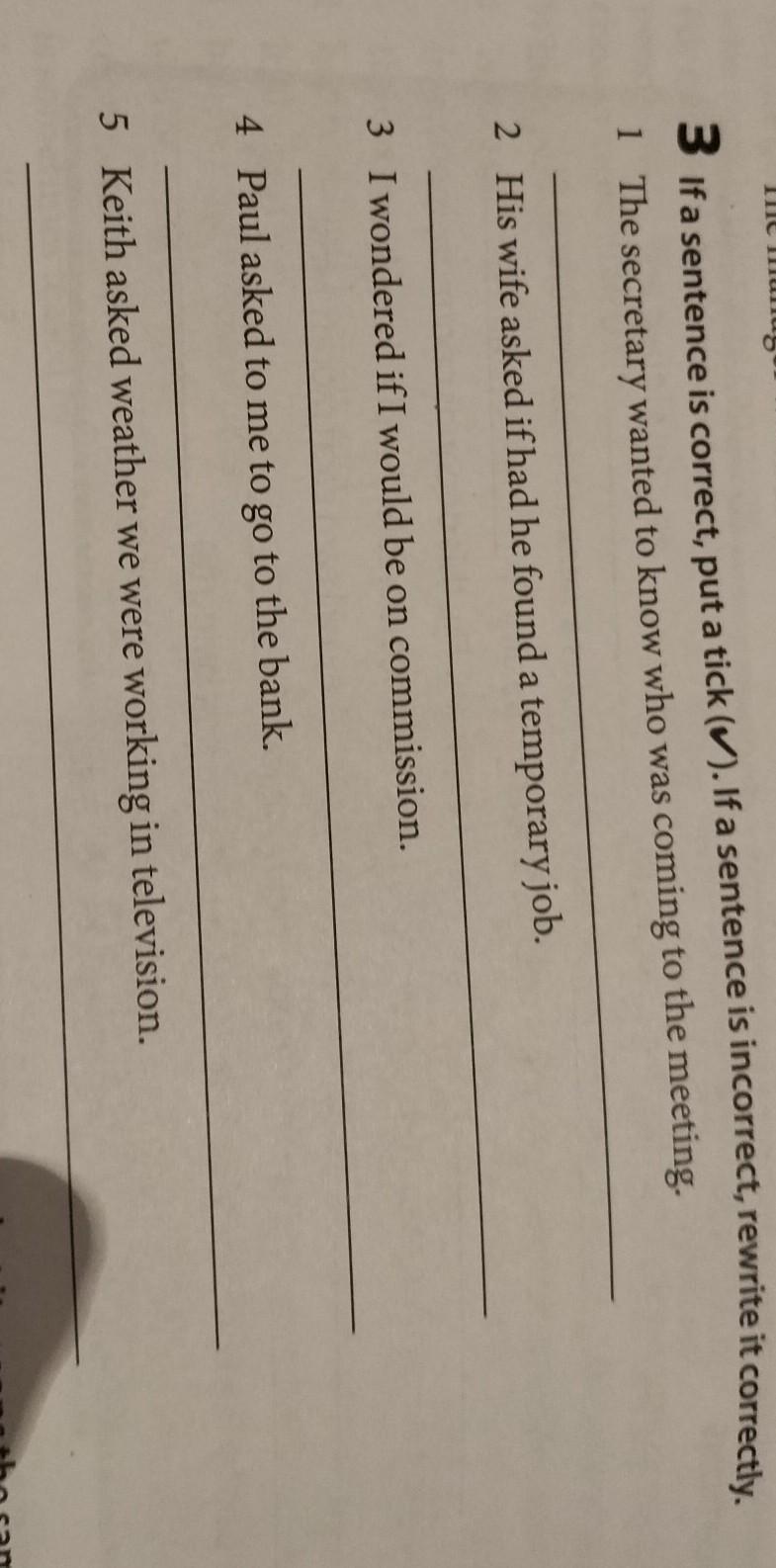 3) If a sentence is correct, put a tick (✔). If a sentence is incorrect, rewrite it correctly.