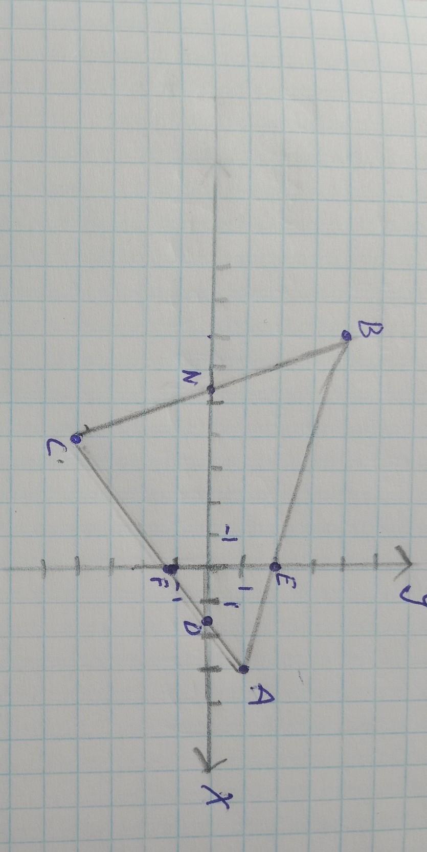 дано авс трикутник а(3;1) в(-7;4) с(-4;-4) знайти координати перетину точок перетину кожної сторони трикутника з осями координат