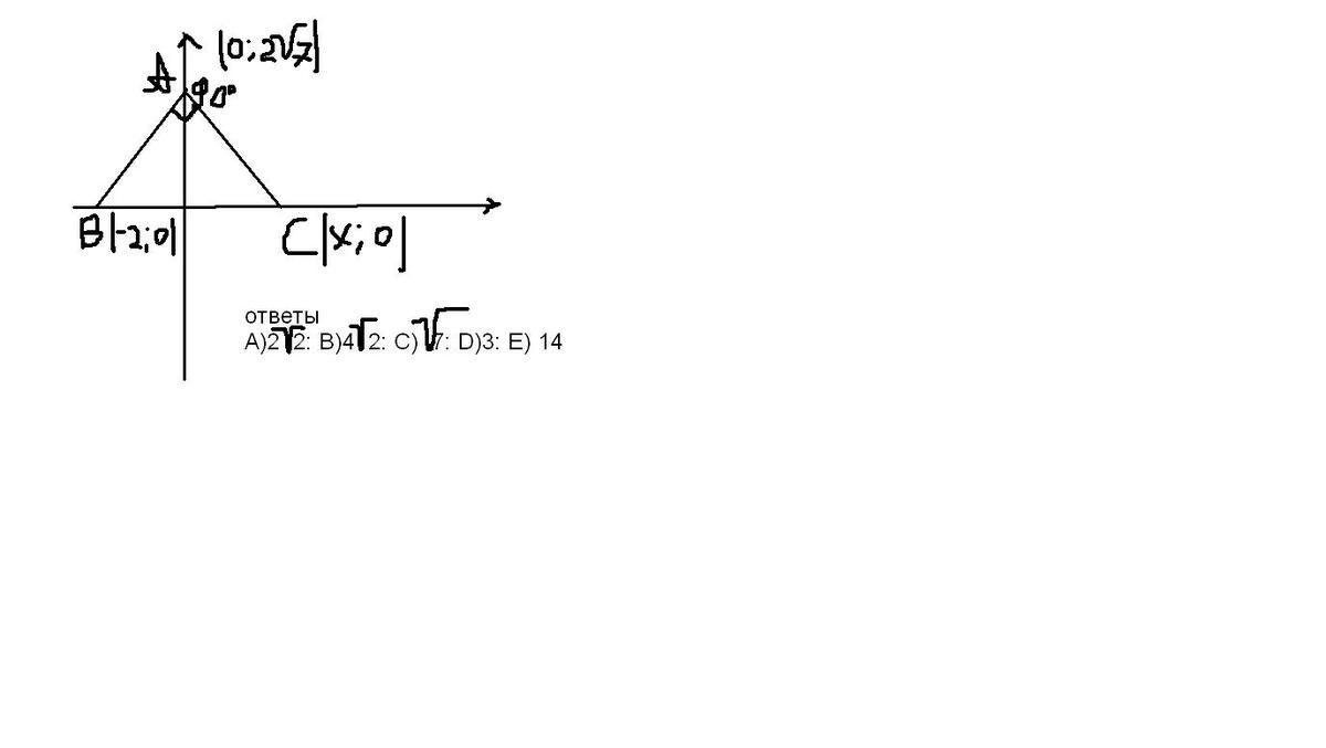 1,угол А=90.найдите абсциссу точки С,Если А(0:2корень из 7) В(-2:0).рисунок 2