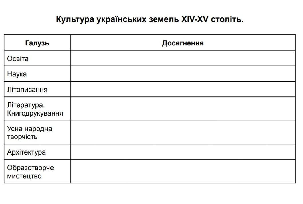 Наука: У XIV-XV століттях на території України існували культури Литви, Польщі, Золочівської держави та Галицько-Волинського князівства, що мали свої особливості у розвитку науки. Основними галузями науки цього періоду були астрономія, математика, фізика, медицина та аптекарство. У Литві у XIV ст. розвивалися математика та астрономія. Наприклад, в Кракові, що належав до Литви, діяли такі вчені, як Ніколаєв Герберштейн та Ян Длугош, який написав працю про астрономію «Літопис Астрономічний». У Польщі також розвивалися математика та астрономія, тут діяв вчений Миколай Коперник, автор теорії про геліоцентричну систему. У Галицько-Волинському князівстві розвивалась медицина та аптекарство. Єдиним науковцем цього князівства був Стефан Кобза, автор праці про медицину та аптекарство «Антидотарій».