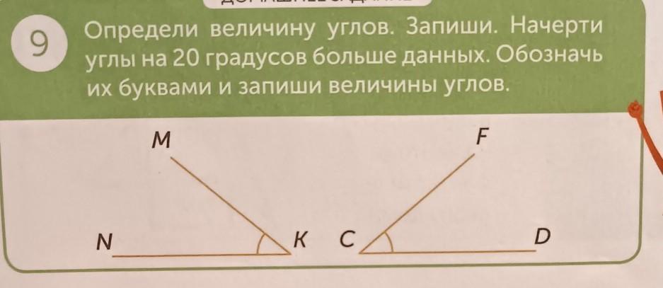 9 ДОМАШНЕЕ ЗАДАНИЕ Определи величину углов. Запиши. Начерти углы на 20 градусов больше данных. Обозначь их буквами и запиши величины углов. M F N K с D w ПОЧЕМУ НАЗОВИ ОБЪЯСНИ