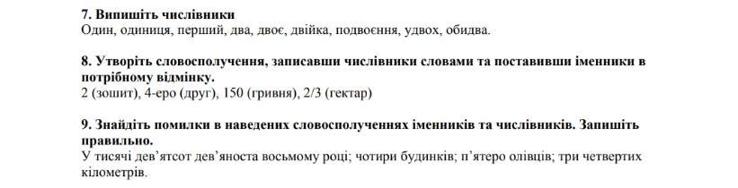 9.у тисячу дев‘ятсот дев‘яносто восьмому році; чотири будинки;п‘ять олівців; три четвертих кілометра