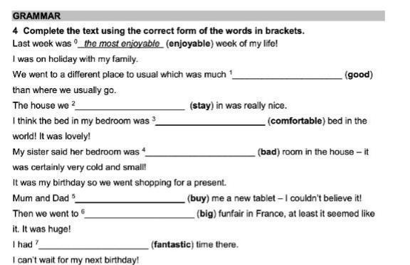 7. I had a fantastic time there. I can't wait for my next birthday! (comparative form of "fantastic")