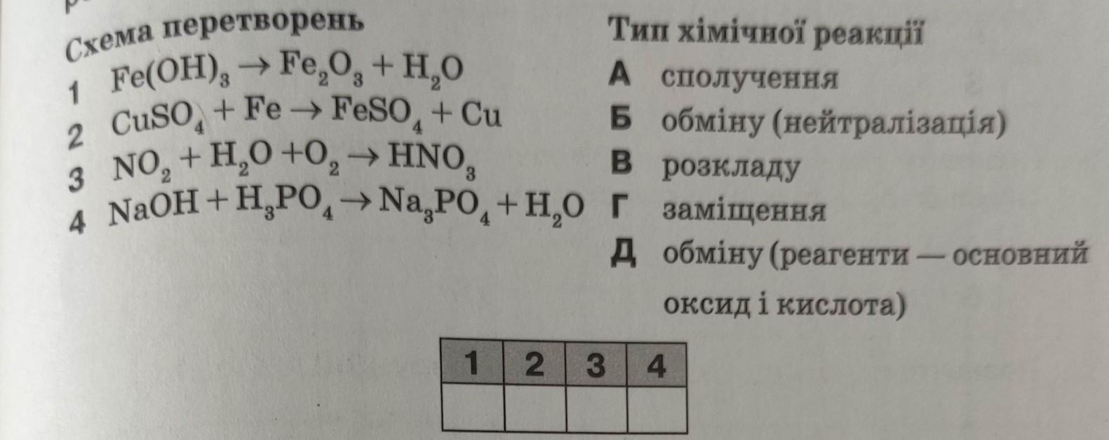 Установіть відповідність між схемою перетворень і типом хімічних реакцій