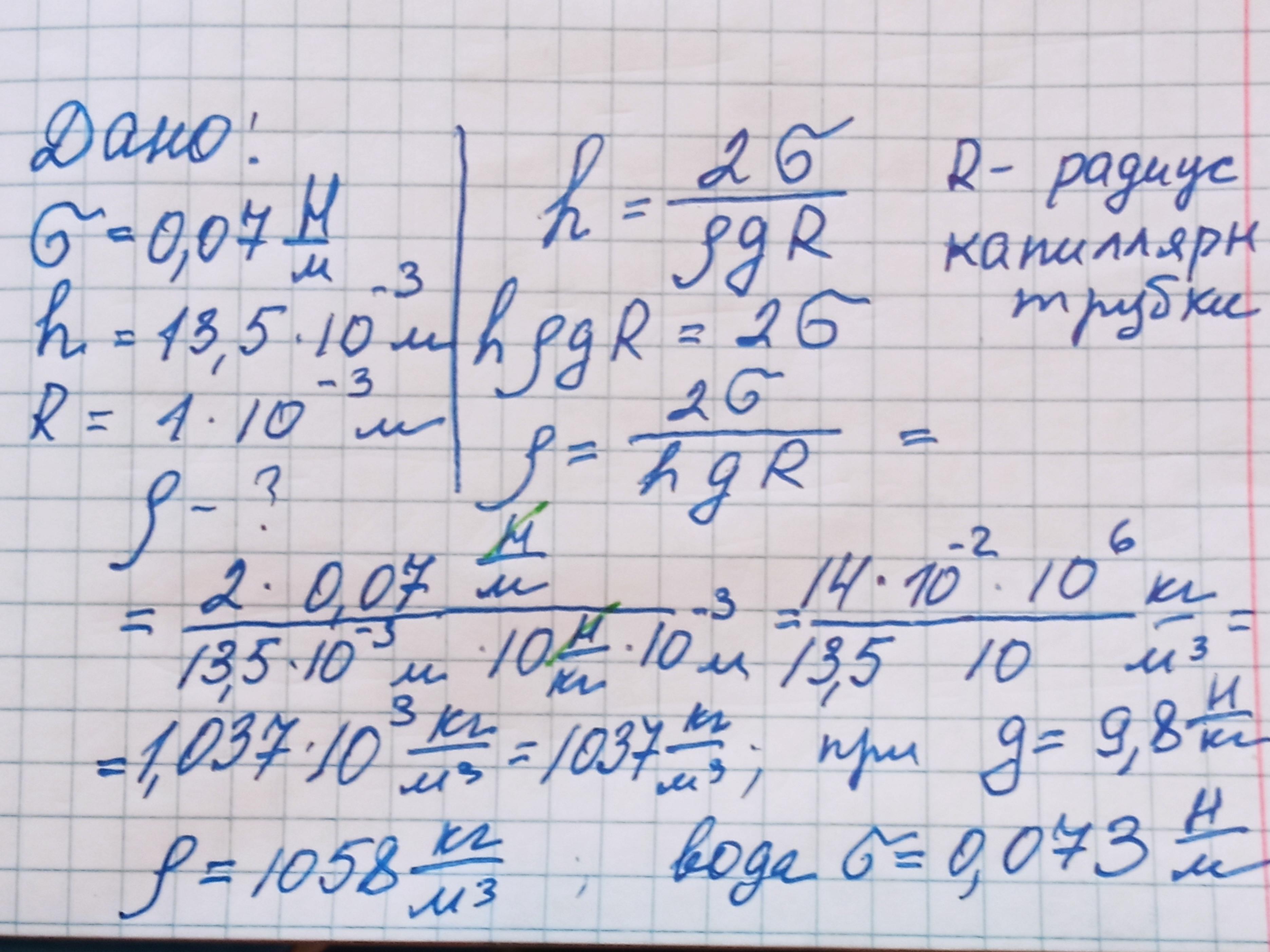 Плотность жидкости 1037 кг/м³.