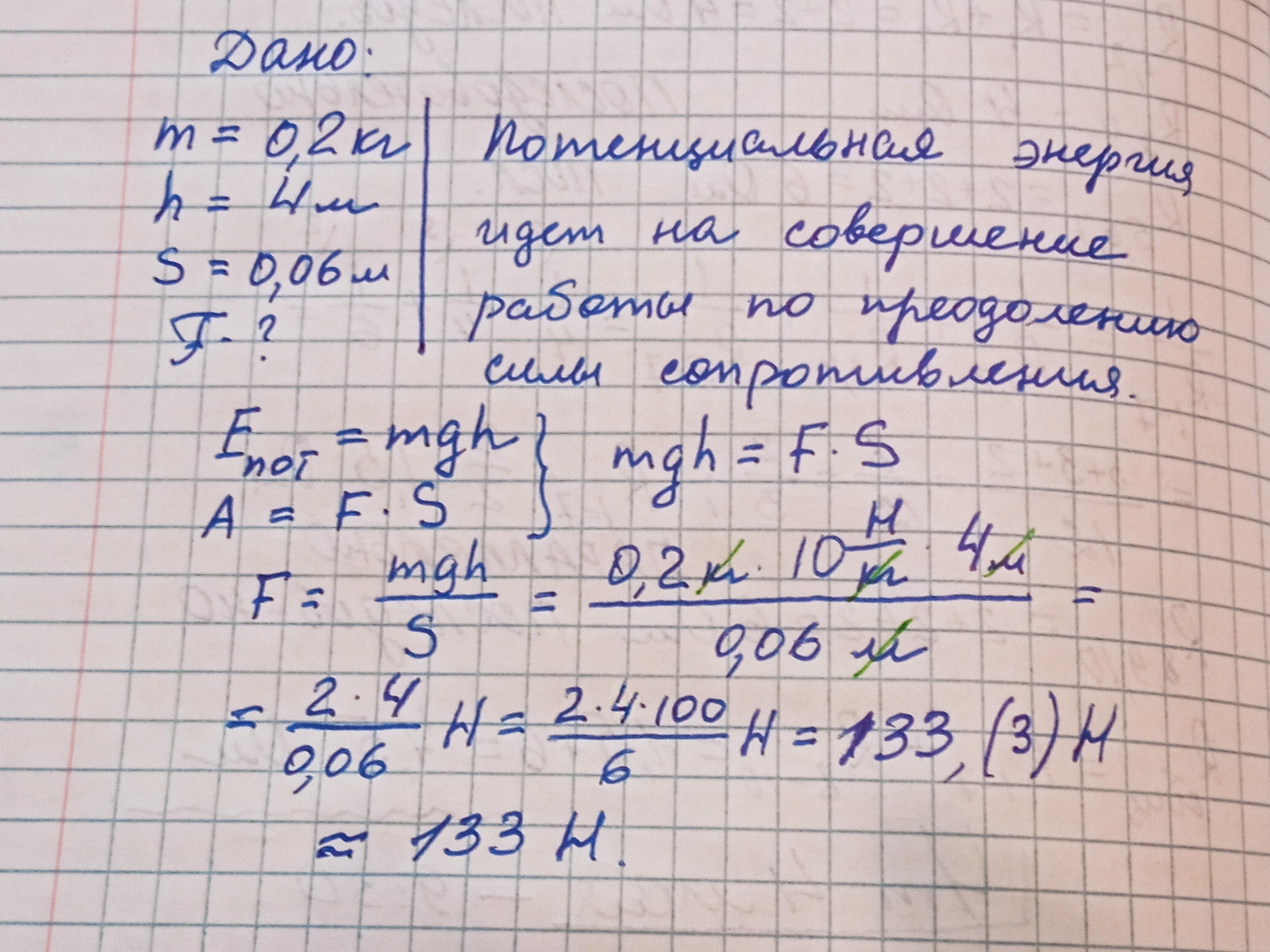 Металева куля масою 200 г падає з висоти 4 м та заглиблюється в пісок на глибину 6 см. Визначити силу опору рухові кульки в піску.