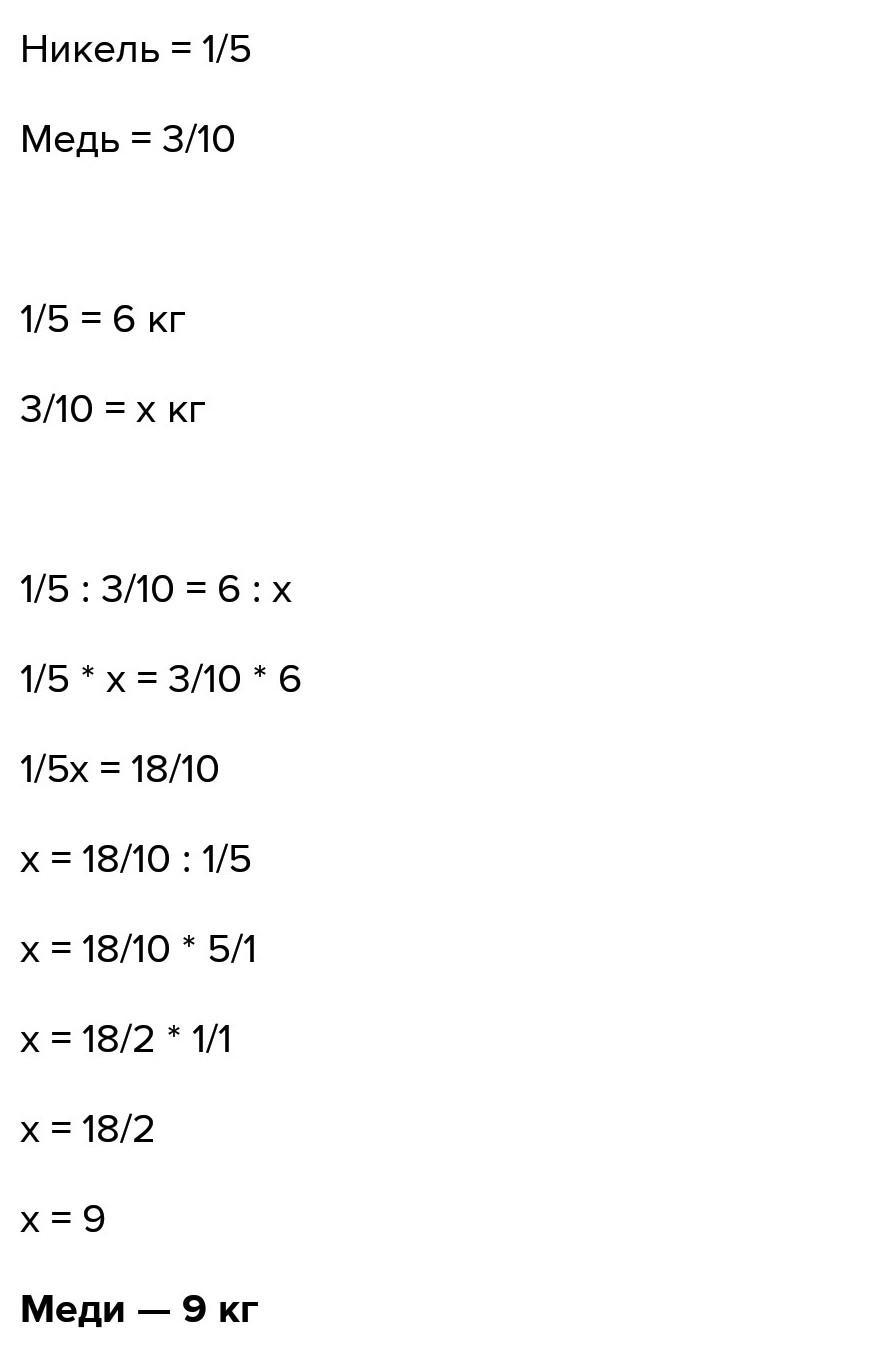 По круговой диаграмме определи массу меди, если масса никеля составляет 6 кг.