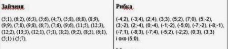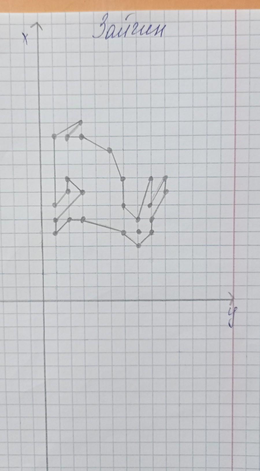 Коли побудуєте всі кординати то мають вийти тварини які вказані на фотографії.