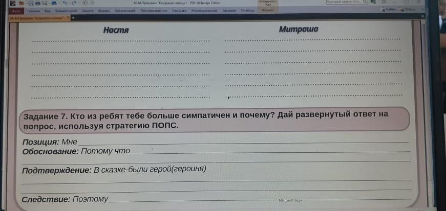 Задание 7. Кто из ребят тебе бOЛЬШЕ СИМПатичен и почему? Дай развернутый ответ на вопрос, используя стратегию ПОПС. Позиция: Мне Обоснование: Потому что Подтверждение: В сказке-были герой(героиня) Следствие