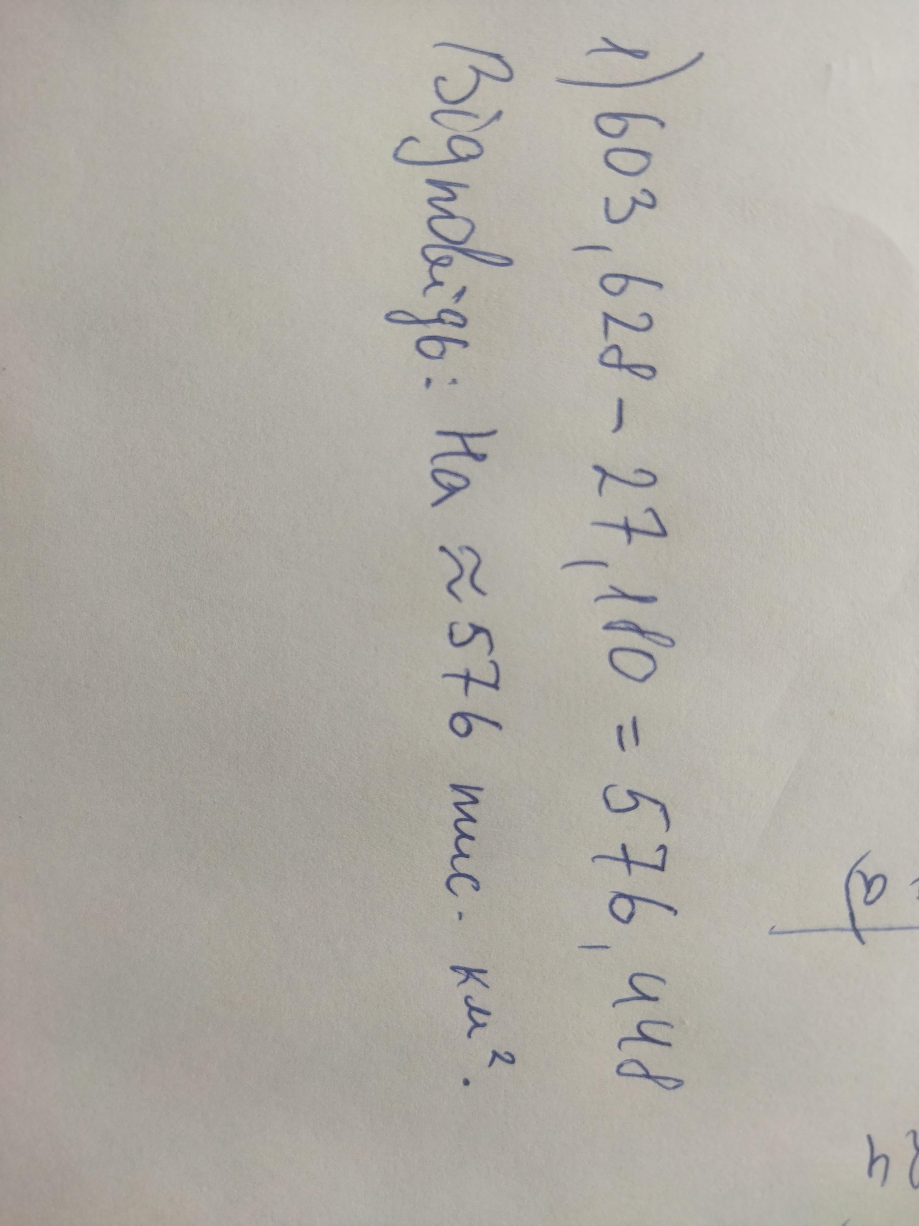 Площа Запорізької області складає 27,18 тис.км², а площа території України 603,628 тис. км². На скільки площа території України більша за площу Запорізької області? Вiдповiдь округліть до одиниць.