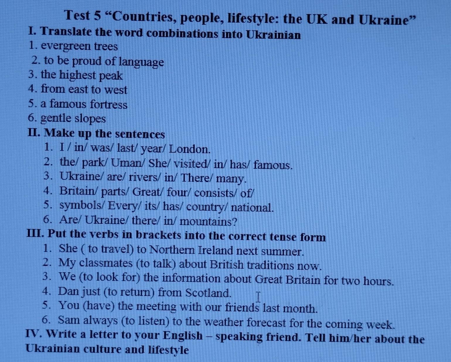 Test 5 "Countries, people, lifestyle: the UK and Ukraine"