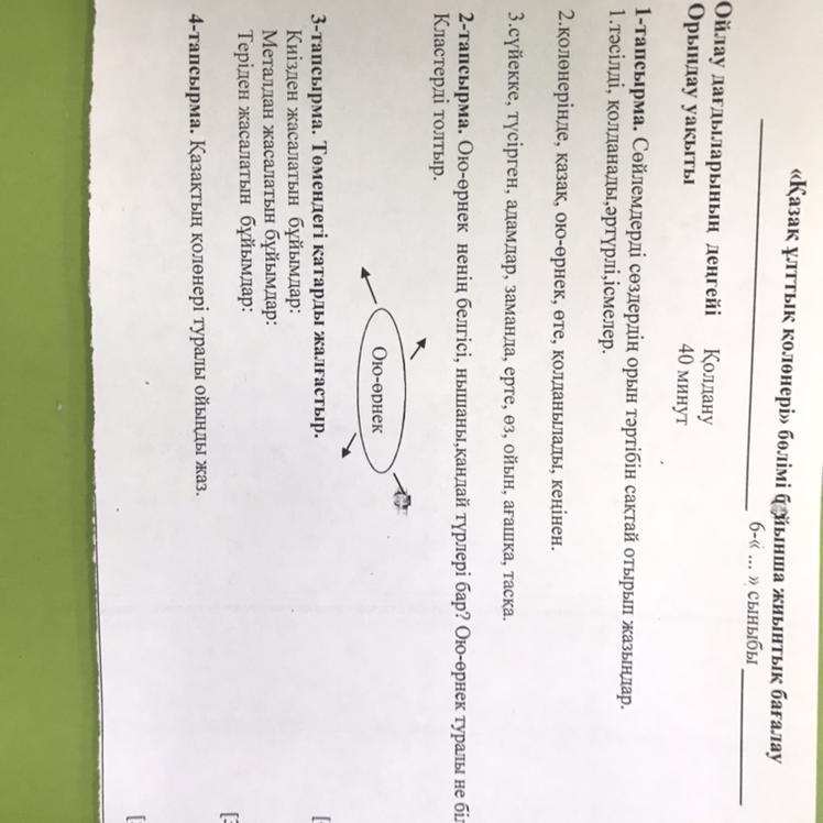 1-тапсырма. Сөйлемдерді сөздердің орын тәртібін сақтай отырып жазыңдар.