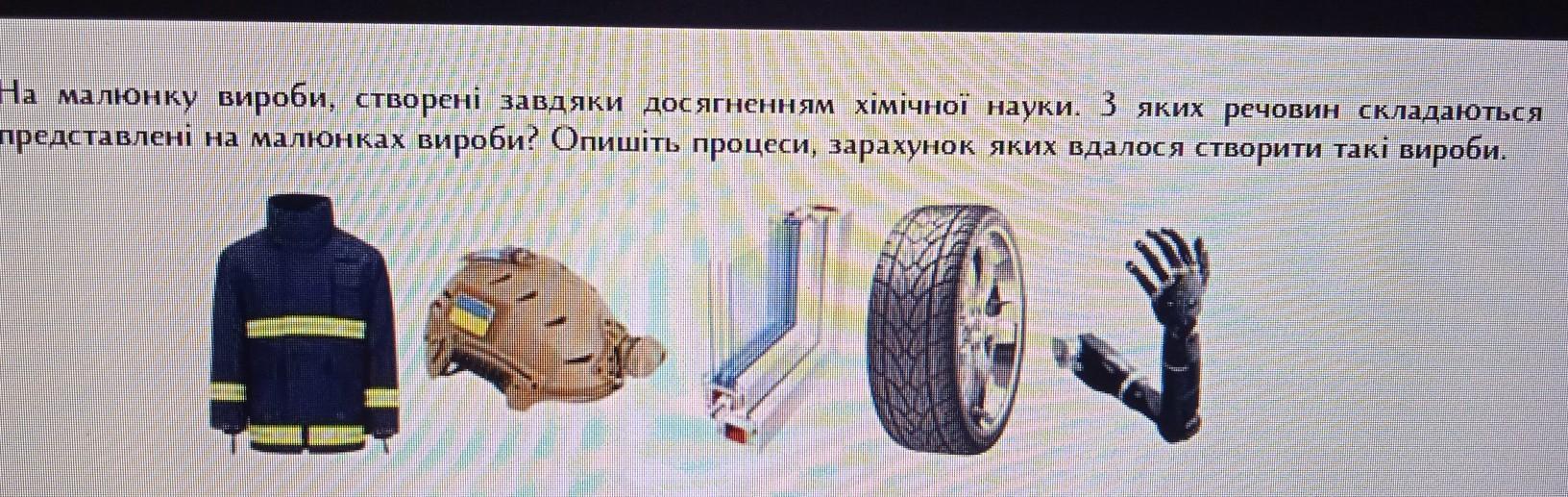 З тканини, пластику, скла, гуми та заліза.