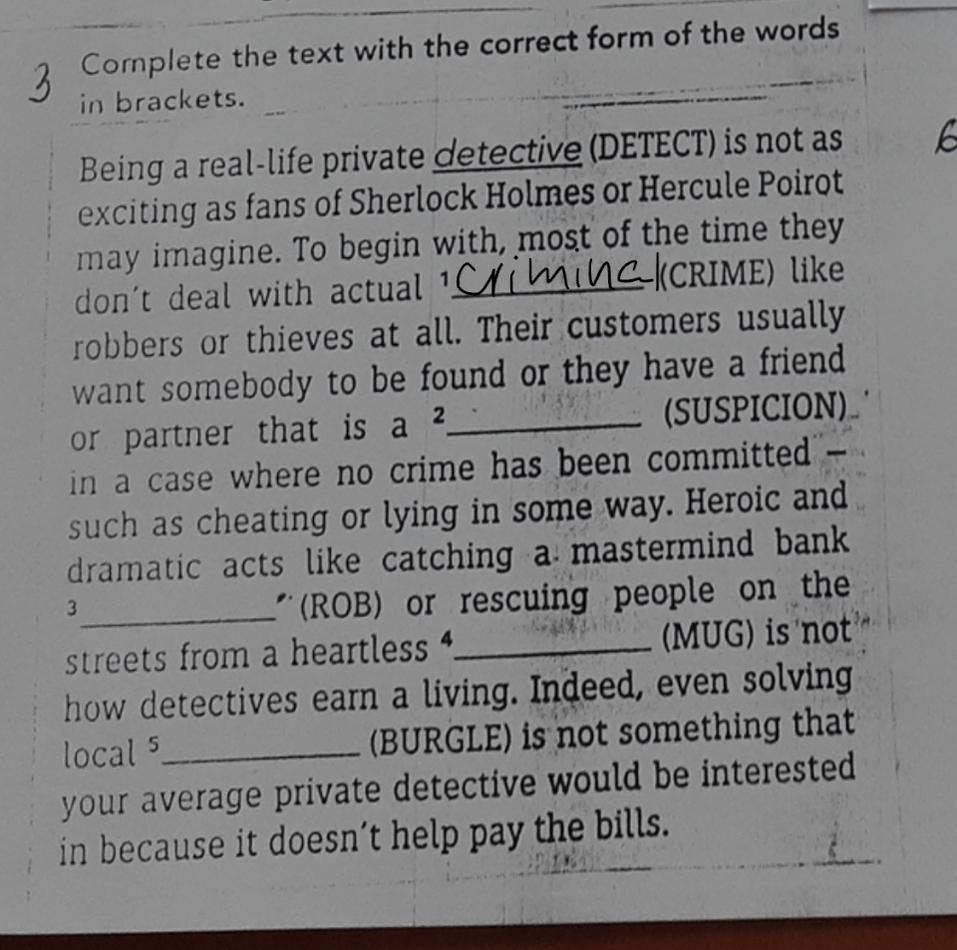 Being a real-life private detective (DETECT) is not as exciting as fans of Sherlock Holmes or Hercule Poirot may imagine. To begin with, most of the time they don't deal with actual 1C/(MIC-(CRIME) like robbers or thieves at all. Their customers usually want somebody to be found or they have a friend or partner that is a 2