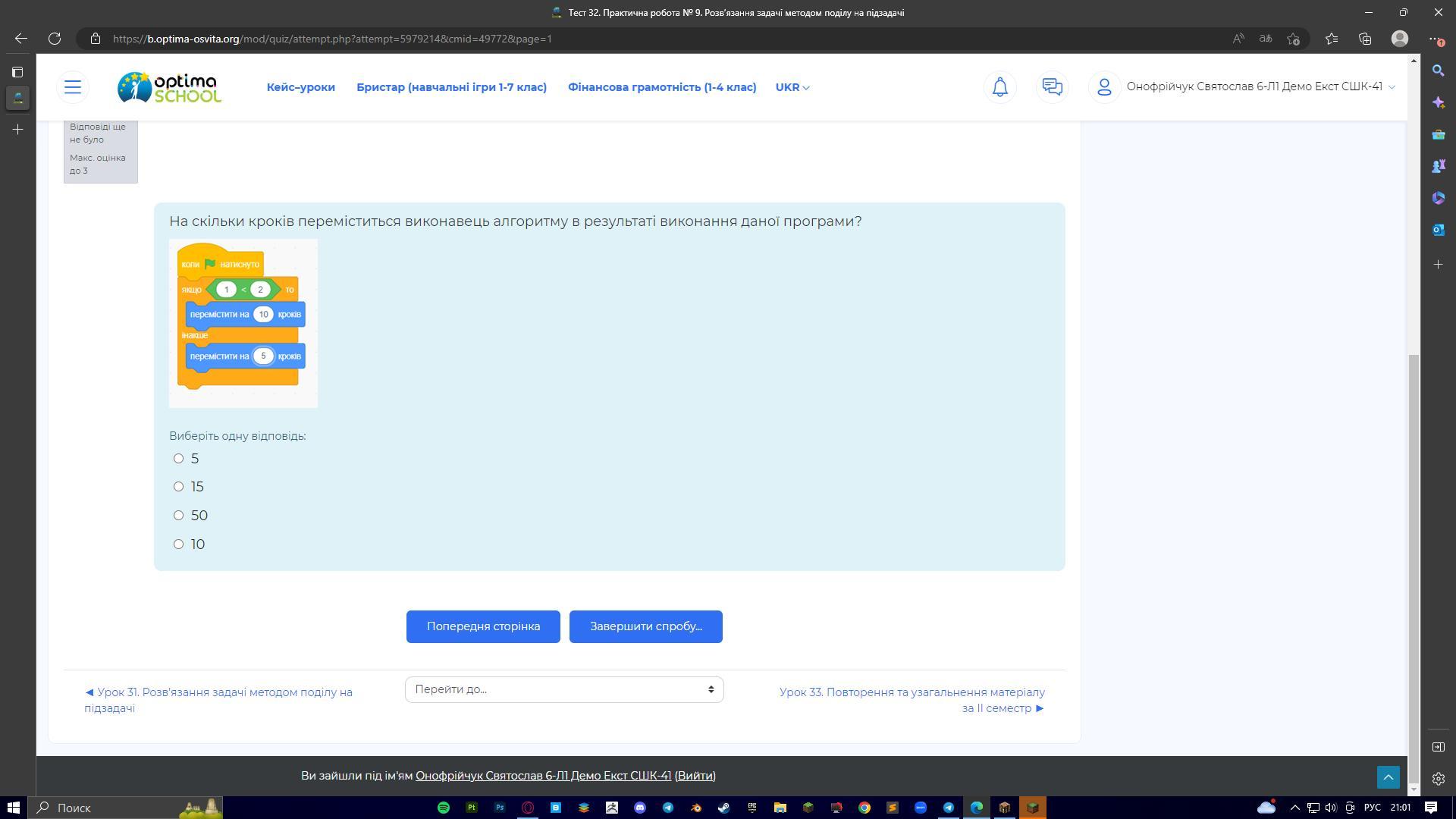 На скільки кроків переміститься виконавець алгоритму в результаті виконання даної програми?