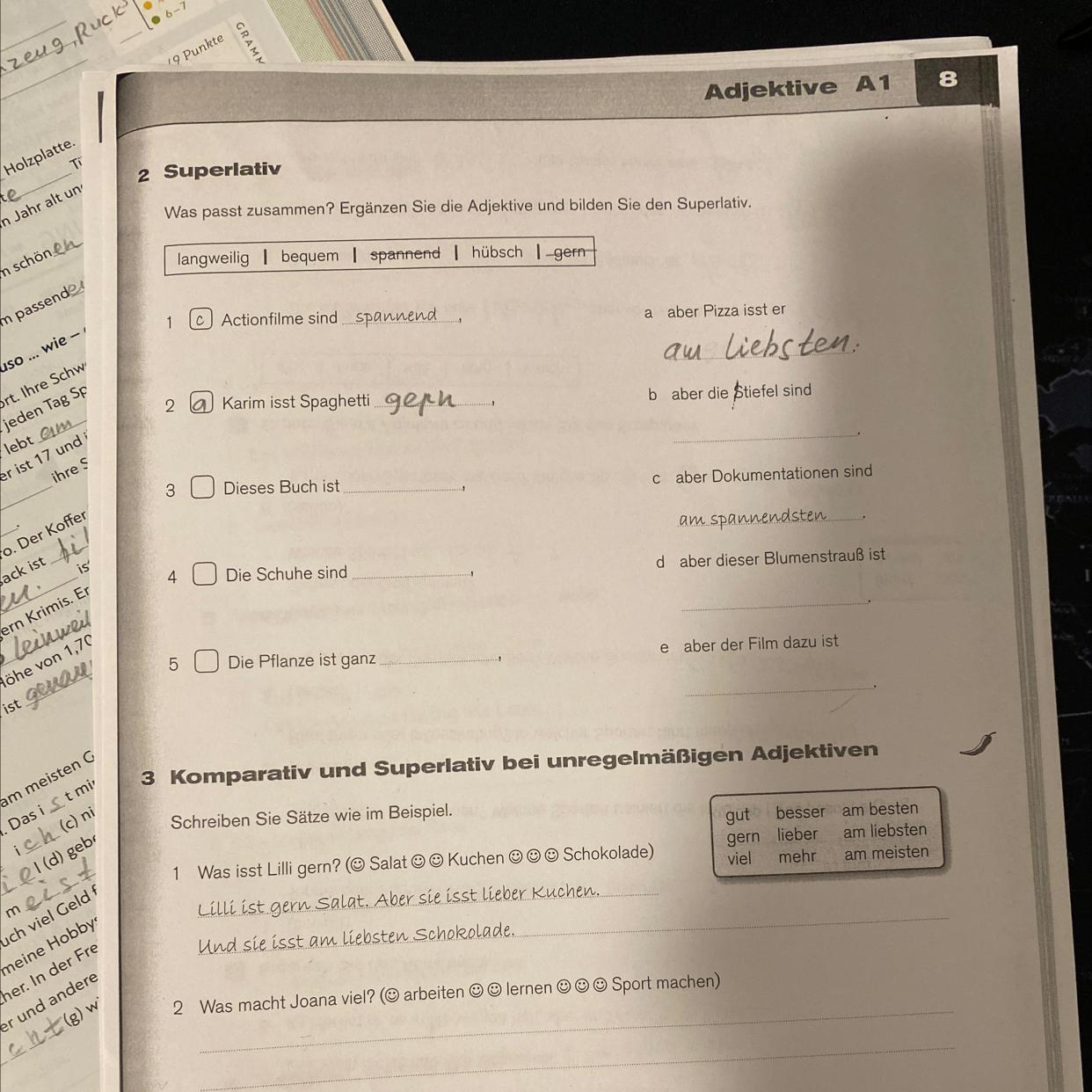 4-b: Die Schuhe sind bequem, aber die Stifel sind am bequemsten.
