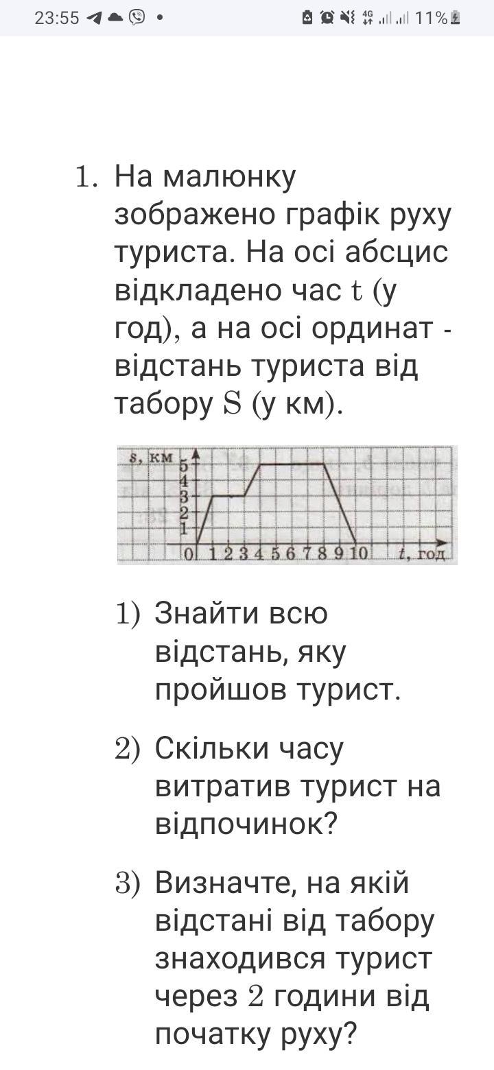 Через 2 години від початку руху турист знаходився на відстані 3 км от табору.