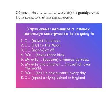 Упражнение: напишите о планах, используя конструкцию to be going to