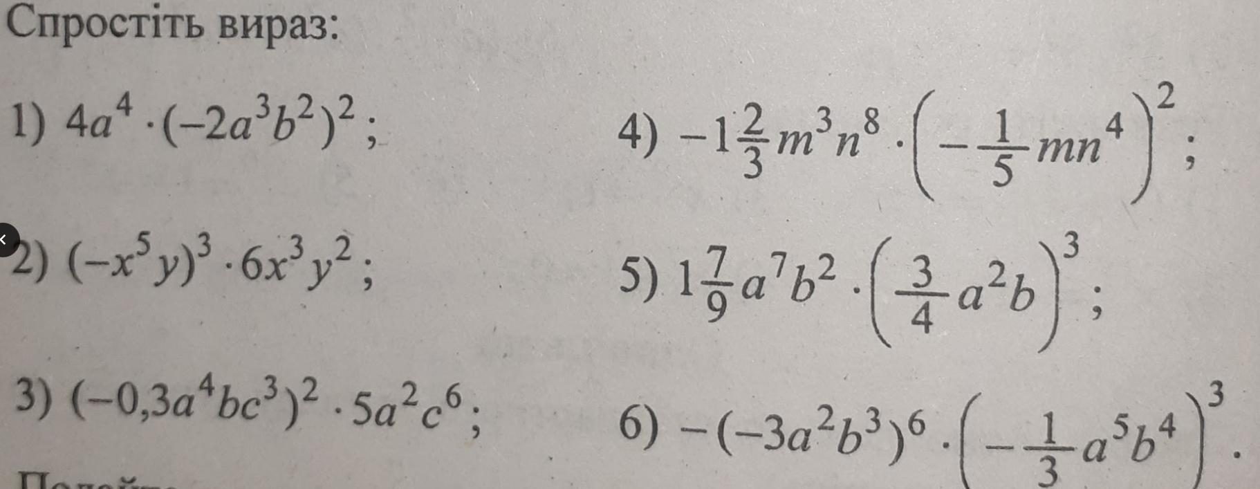 1) 4а⁴×(-2а³b²)²= 4a⁴×4a⁶b⁴= 16a¹⁰b⁴