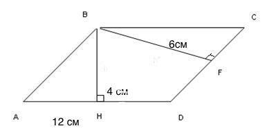 АВСD - паралелограм; АD = 12 см. ВН ⊥ АD; BH = 4 см; ВF ⊥ CD;