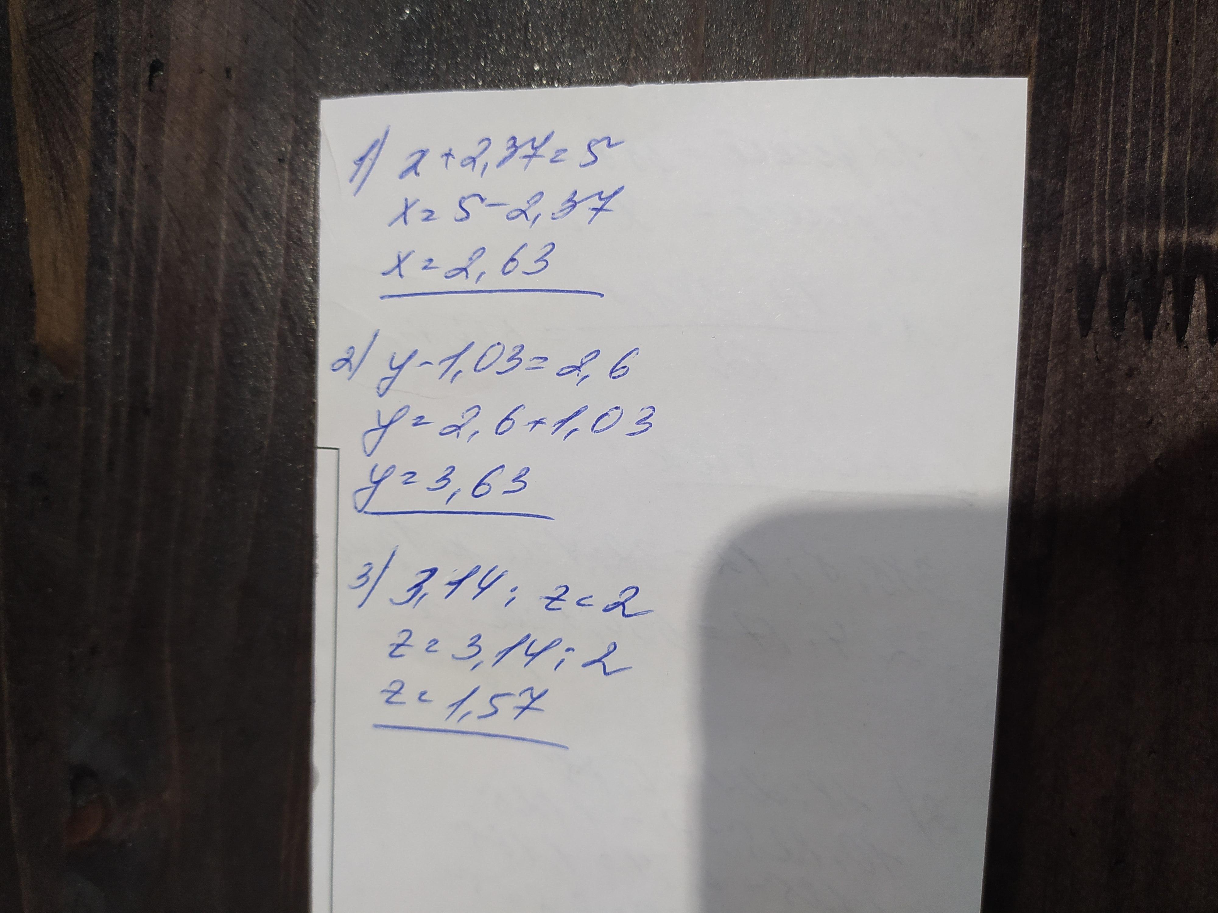 Установи відповідність між рівняннями 1-3 за його розв'язком 1.) x + 2,37=5
