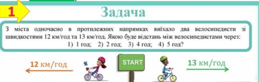 1) 12 + 13 = 25 (км/год)-скорость удаления