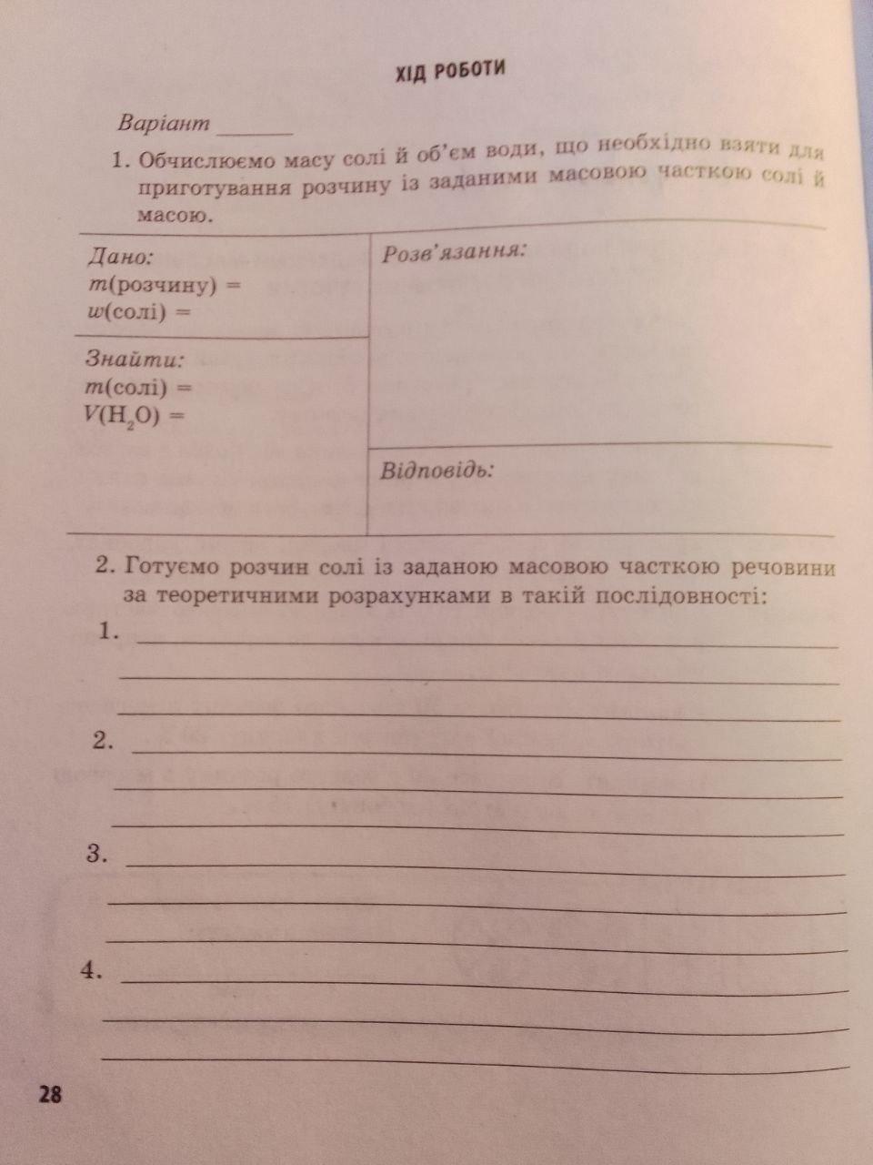 1. Обчислимо масу солі, яка необхідна для виготовлення розчину m(солі) = m(р-ну) * w(р.р) = 50 * 0,1 = 5 г