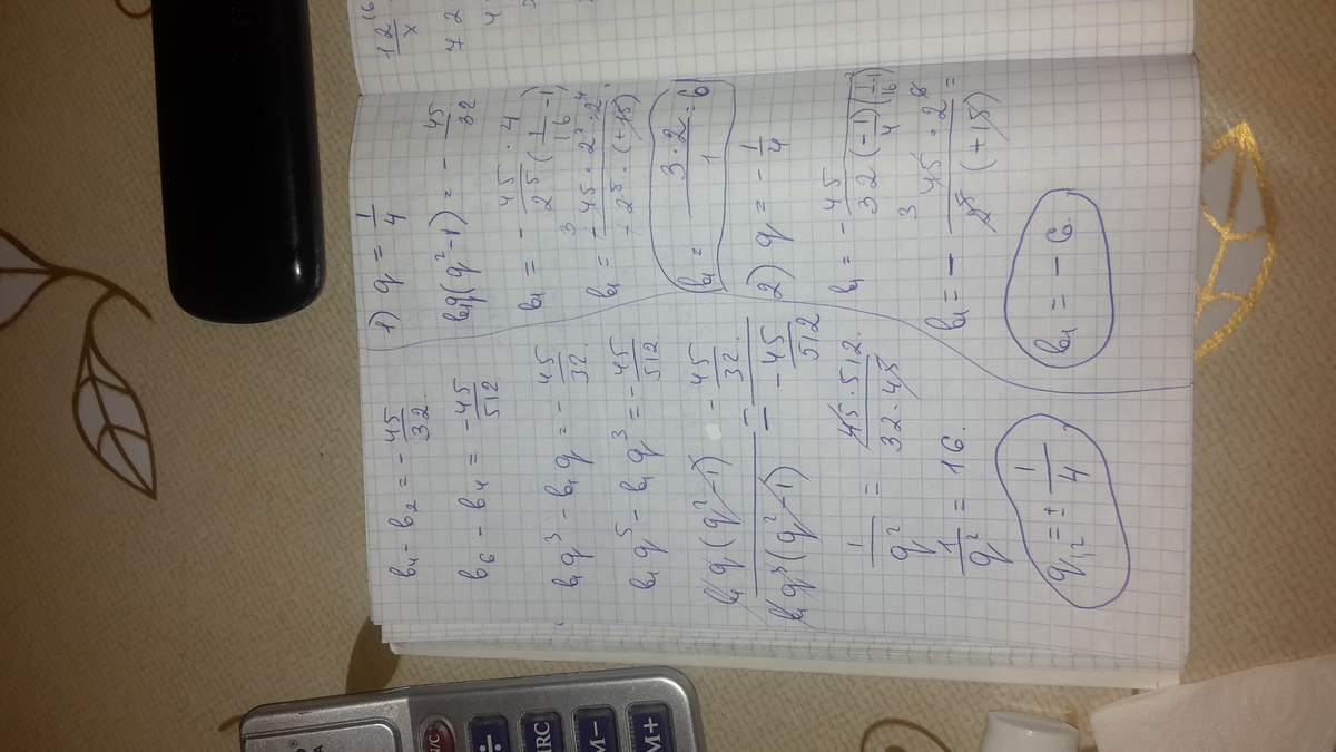 Найдите первый член и знаменатель геометрической прогрессии, если известно, что b4-b2= - 45/32 и b6-b4 = - 45/512