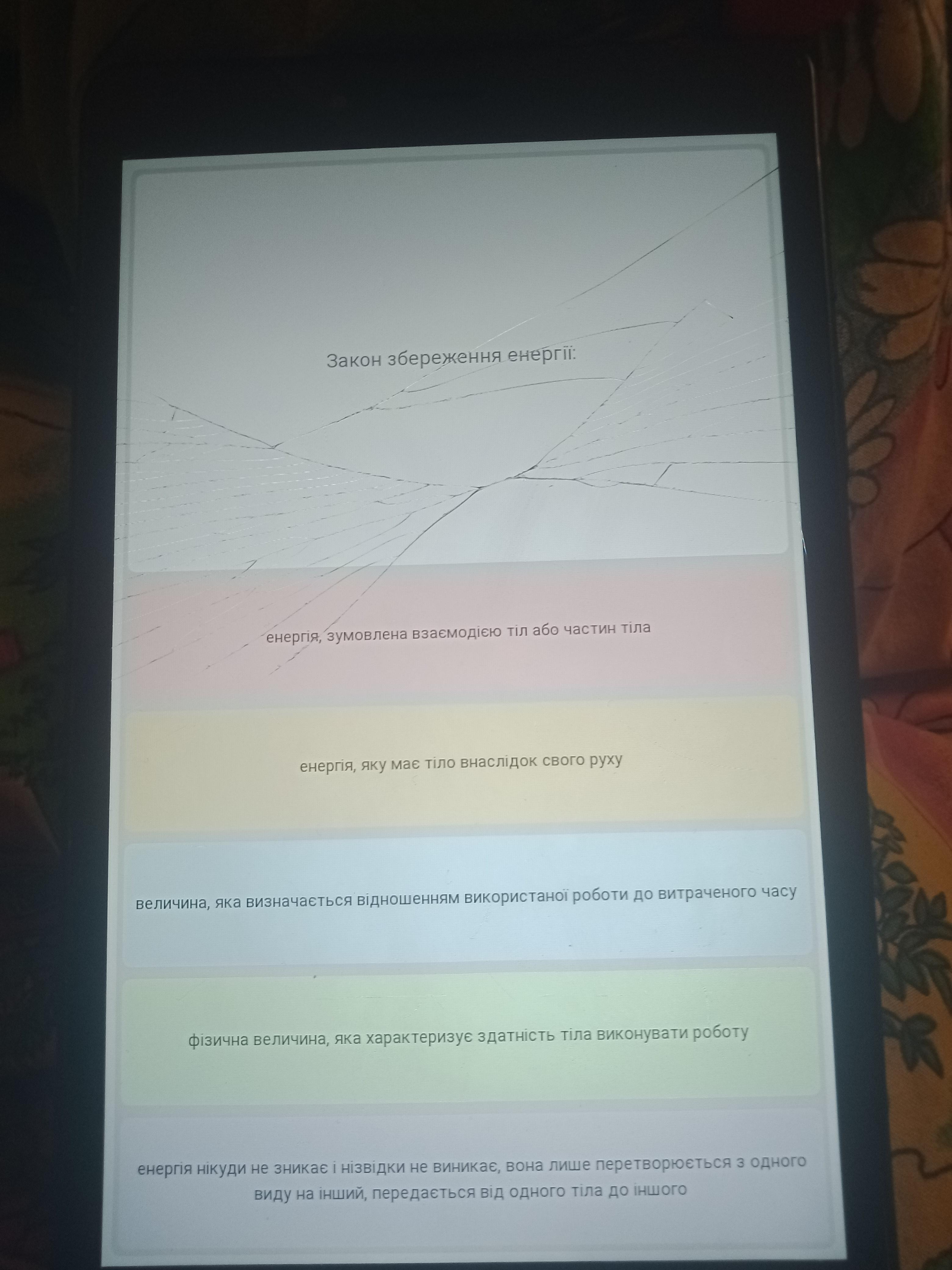 Закон збереження енергії, у фізиці, принцип, згідно з яким повна енергія замкненої системи зберігається впродовж часу. Енергія не виникає з нічого і не зникає в нікуди, а може лише перетворюватись з однієї форми на іншу.