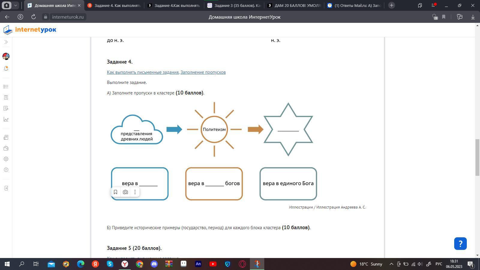 Ответ: Шаманизм-Вера в духов, несколько миллионов лет назад. Политеизм-Вера в многих богов, до нашей эры, Греция. Монотеизм-Вера в единого Бога, наша эра, Рим
