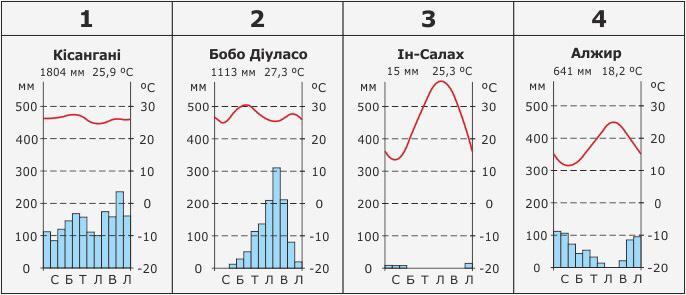 15.Встановіть відповідність між кліматичним поясом та кліматичною діаграмою міста, яке у ньому розташоване?