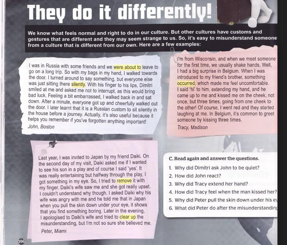 1)this was a bad luck.2)he felling a bit embarrassed.3)she say hello to her brother.4)she become red.5) something got to his eye.6)he clear up.