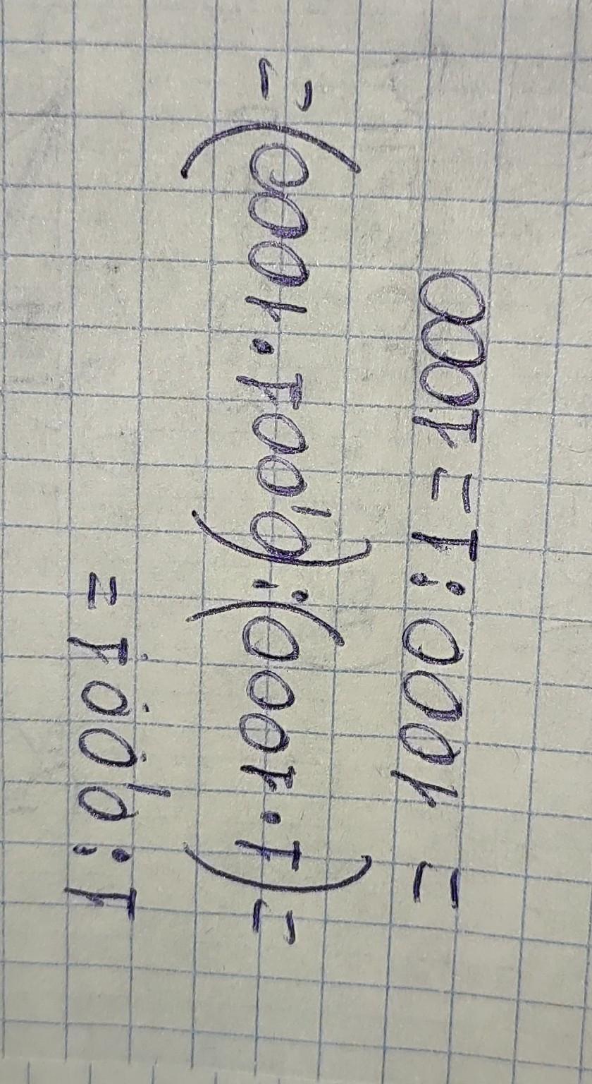 Когда мы делим одно число на другое, мы действительно находим, сколько раз второе число помещается в первое. В данном случае у нас есть число 1, которое мы делим на 0,001. Это означает, что мы хотим узнать, сколько раз 0,001 помещается в число 1.