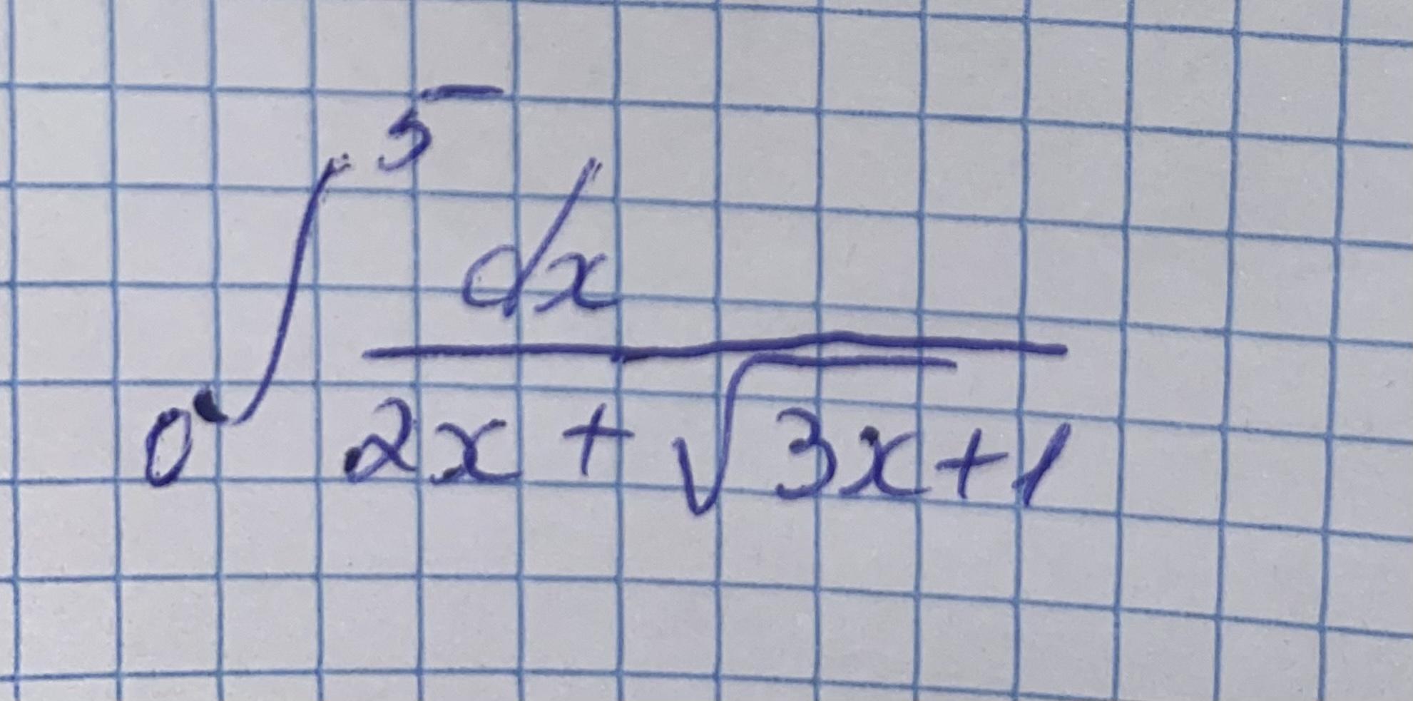 ∫₀⁵dx/(2x+sqrt(3x+1)).
