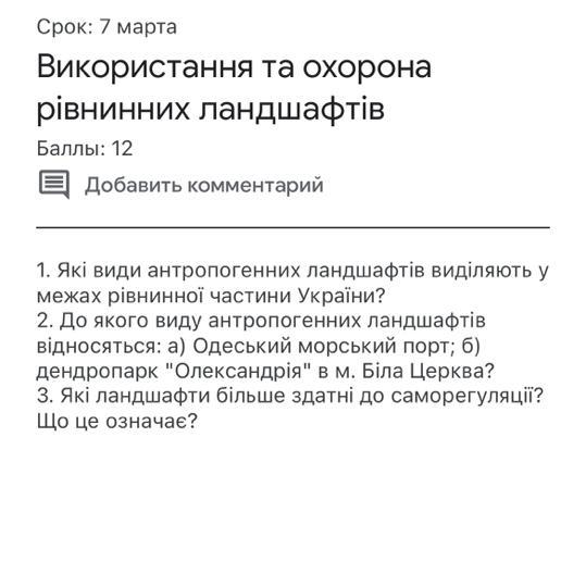 1. У межах рівнинної частини України можна виділити такі види антропогенних ландшафтів: