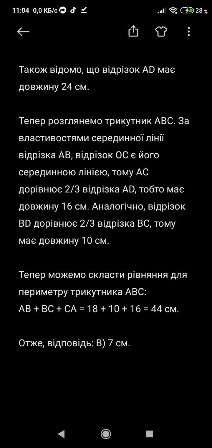 7. Отрезки АВ=18 см и CD=14 см, пересекаясь в точке О, делятся пополам, ДADO=24 см. а периметр Найдите ВС. А) 9 см C) 12 см Е) 10 см В) 7 см D) 8 см A 8 C з D B