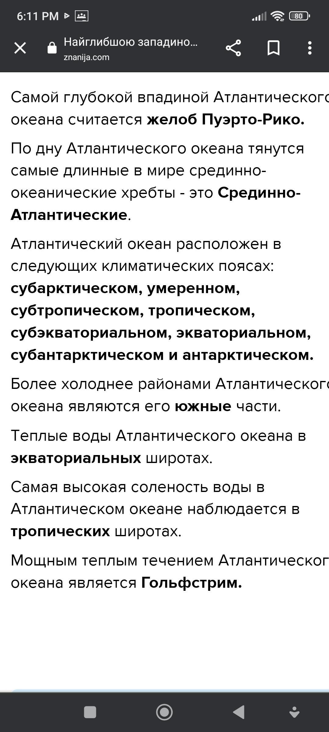 Атлантичний океан розташований в таких кліматичних поясах: ...